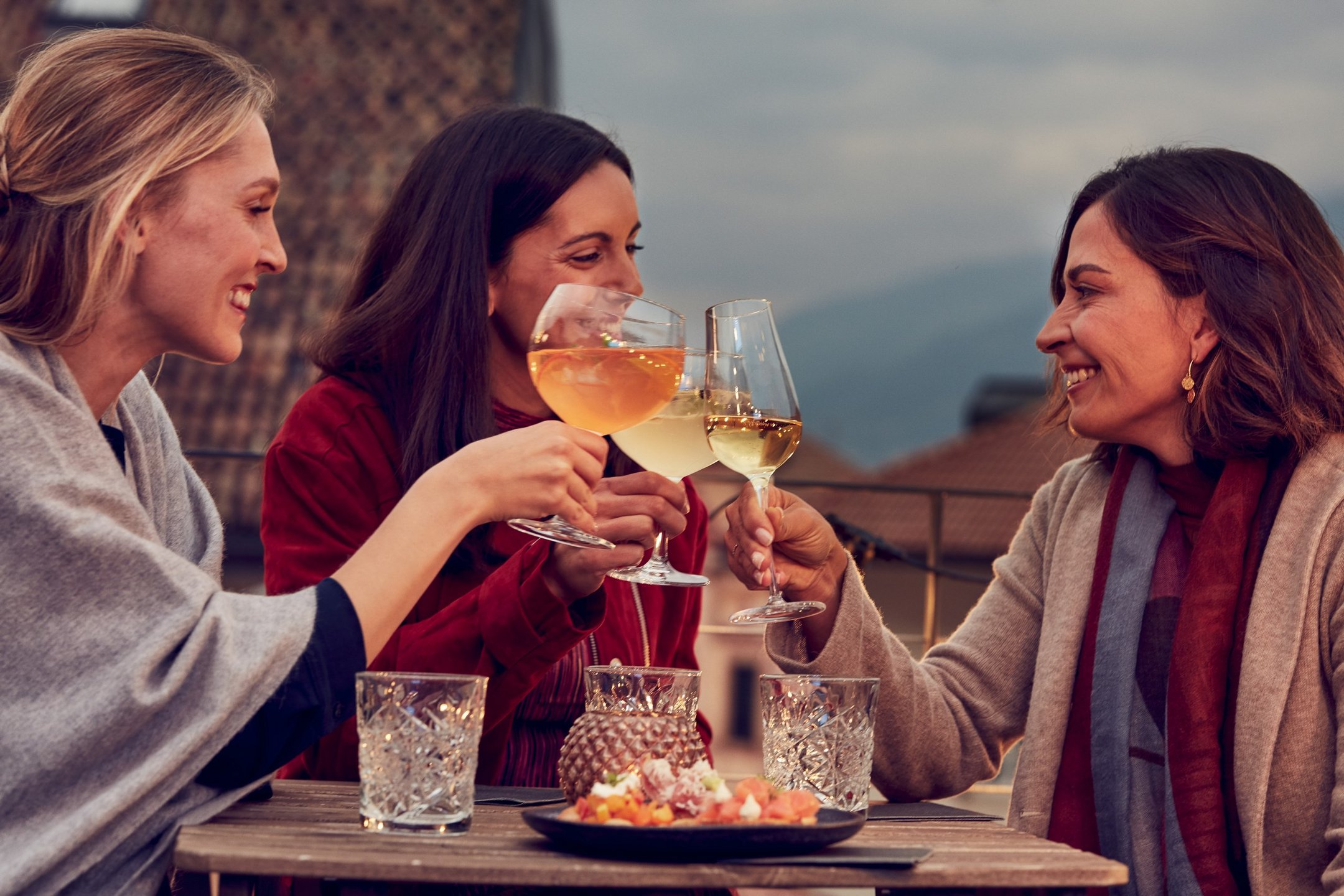 Alpin meets mediterran: Lust auf ein bisschen südliches Flair im Februar? Dann seid ihr in Südtirol bei Gudrun genau richtig. Während es im Hotel am Brenner (Sterzing), im Norden, noch wunderbar winterlich ist, habt ihr in Bozen und Meran an vielen Tagen im Spätwinter und Frühjahr schon die Möglichkeit, draußen in der Sonne zu sitzen und einen Aperitivo zu trinken. In Meran eignet sich dafür der zentrale, weitläufige Thermenplatz bestens. Hier gibt es gleich zwei Lokale, die mit kuscheligen Decken und Wärmestrahlern ausgestattet sind, um euch den Aperitif auch zur kalten Jahreszeit unter der Sonne so angenehm wie möglich zu gestalten. Chips und Oliven gibt’s kostenlos dazu. Und das Beste? Hier kann man wunderbar die Leute rundherum beobachten oder die verschneiten Gipfel der Texelgruppe anhimmeln. In Bozen trifft man sich am liebsten auf dem Waltherplatz in der Sonne. Rund um den Platz befinden sich Cafés und Bars, die Hugo, Veneziano, Weißwein und Co. anbieten. Gudruns Tipp: Das Cafè Hotel Città oder das Walthers'. Also dann: prost, salute und chin-chin!