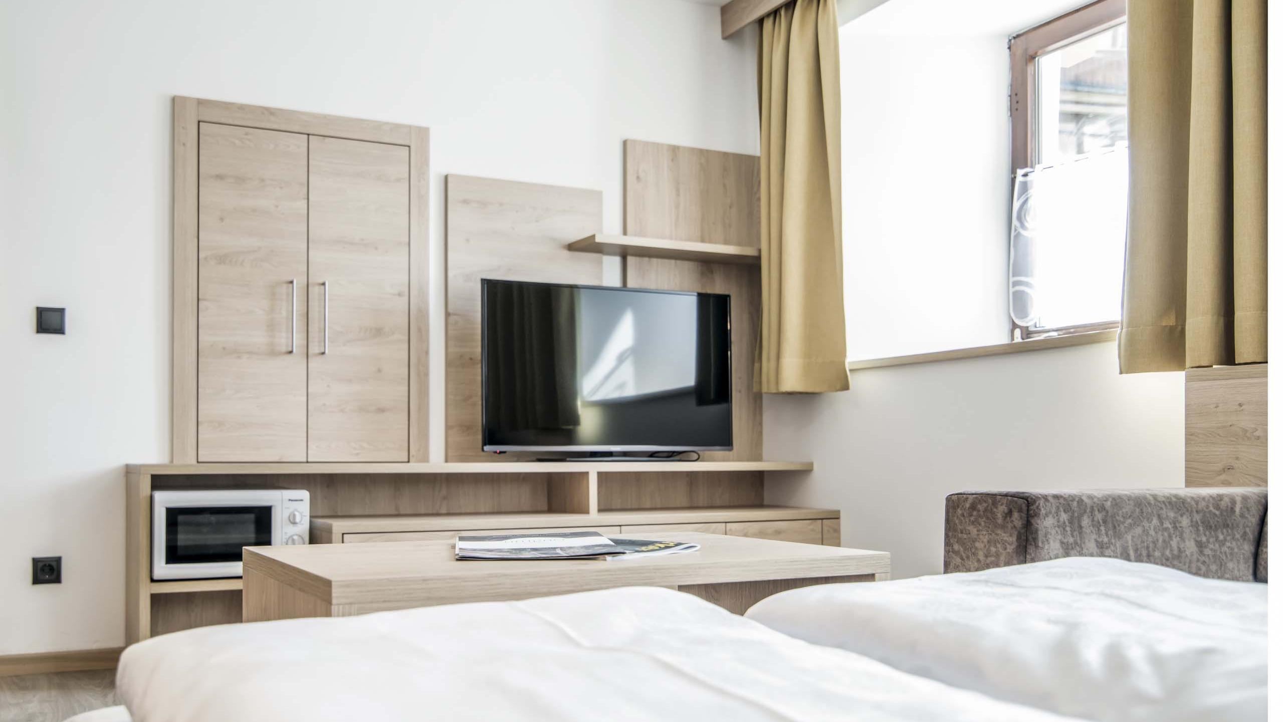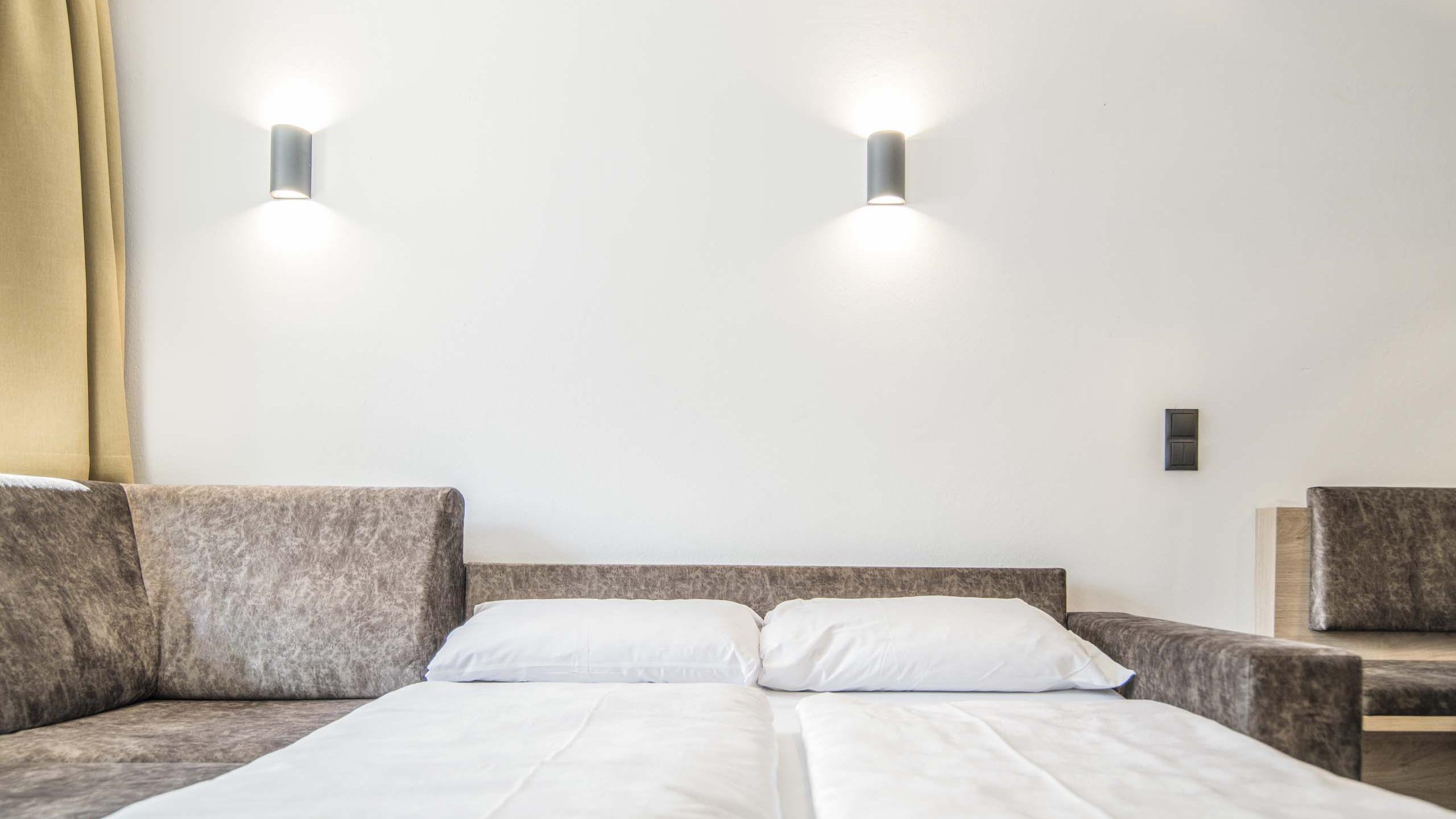 Camera da letto: letto matrimoniale, letto singolo, armadio, 1 finestra, letto aggiuntivo e culla su richiesta