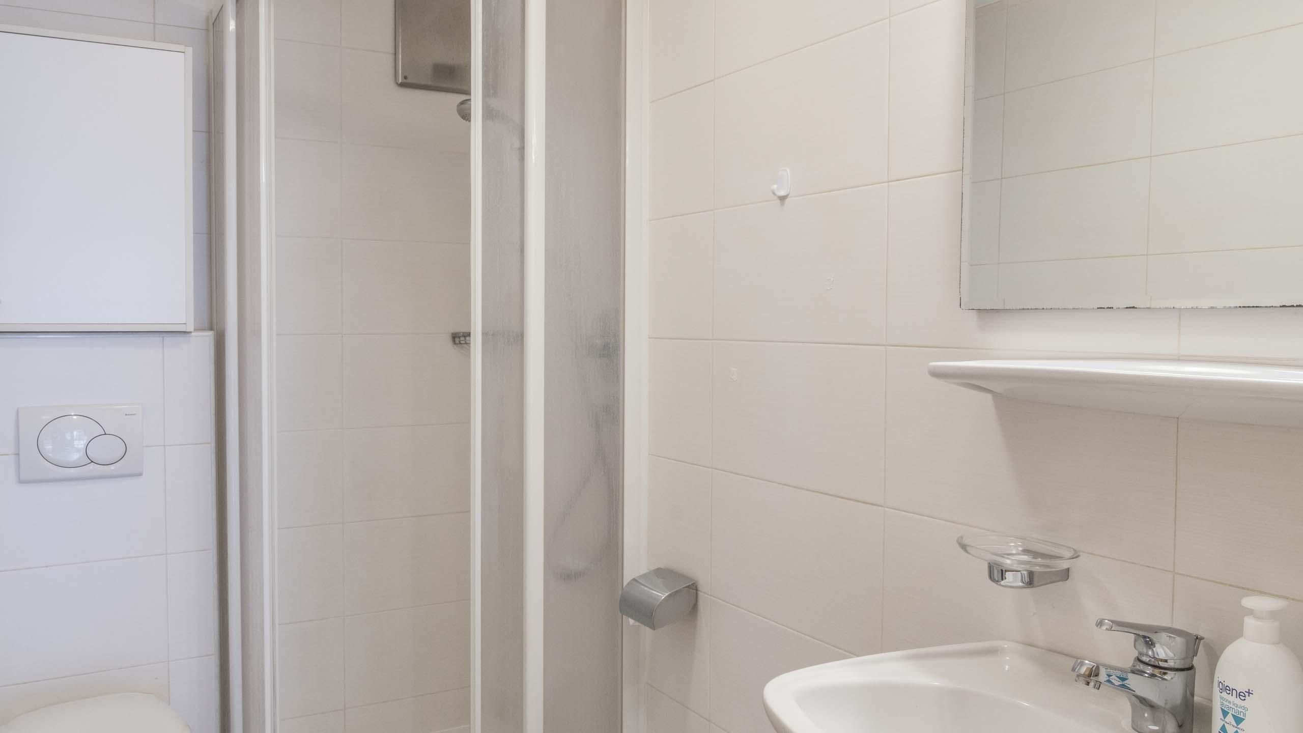 Bagno: WC, bidet, lavandino con specchio, doccia, lavatrice, asciugacapelli