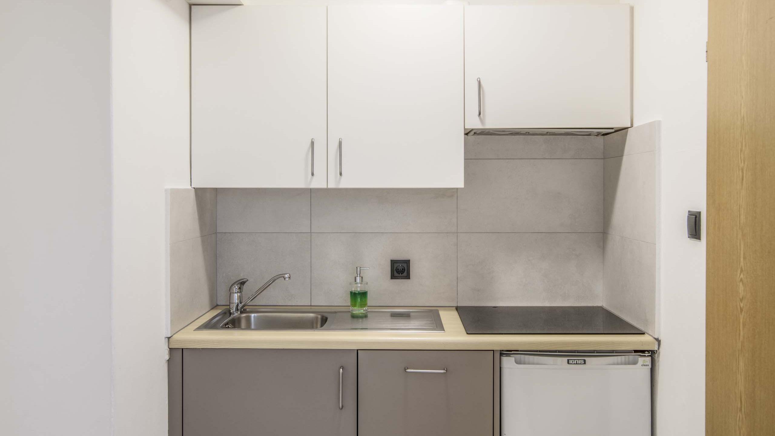 Composto da soggiorno, camera da letto, cucina e bagno.