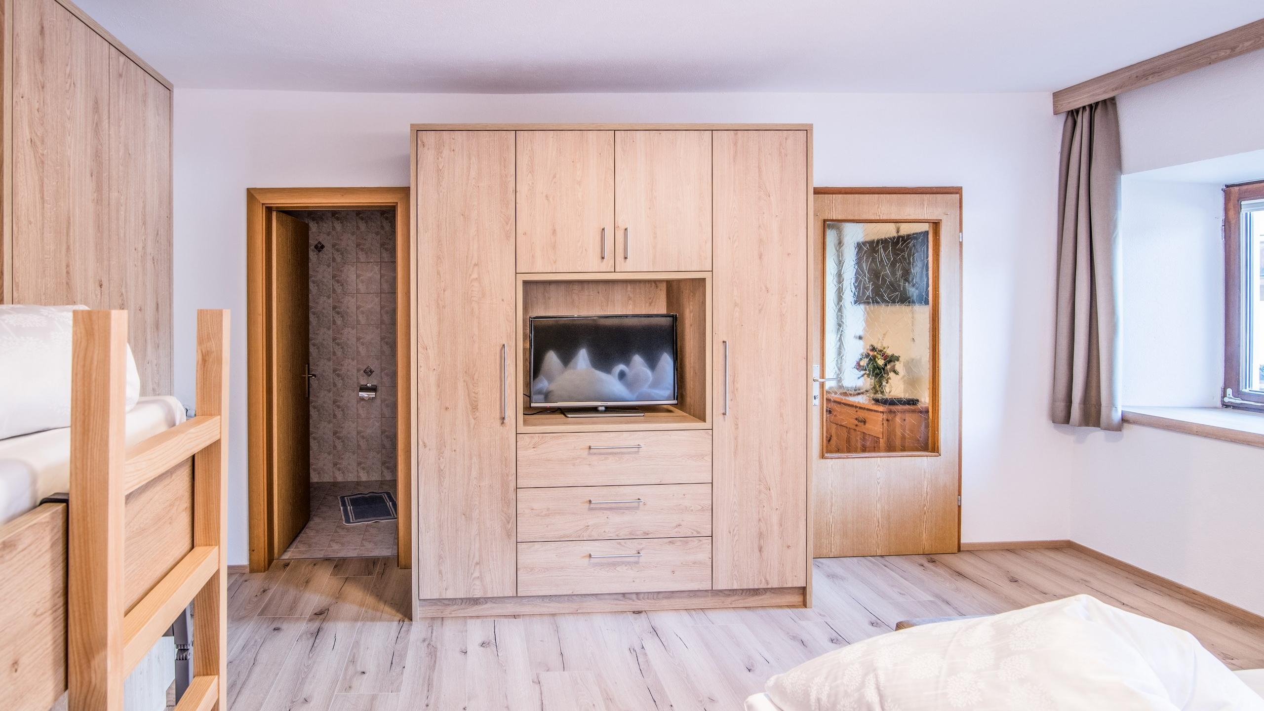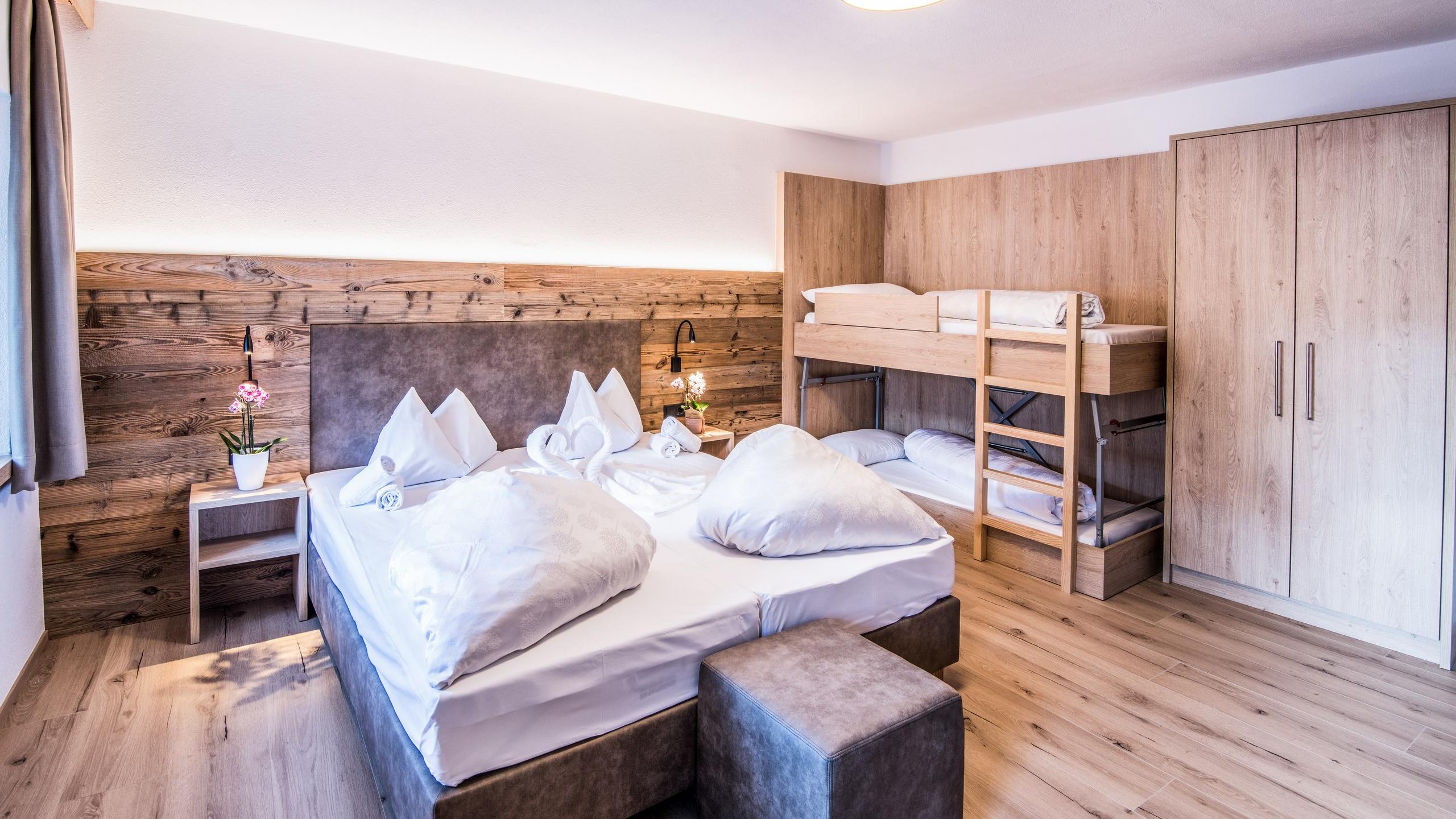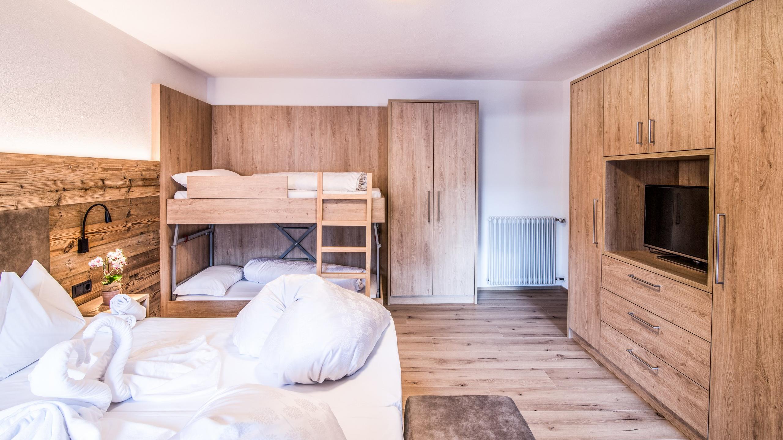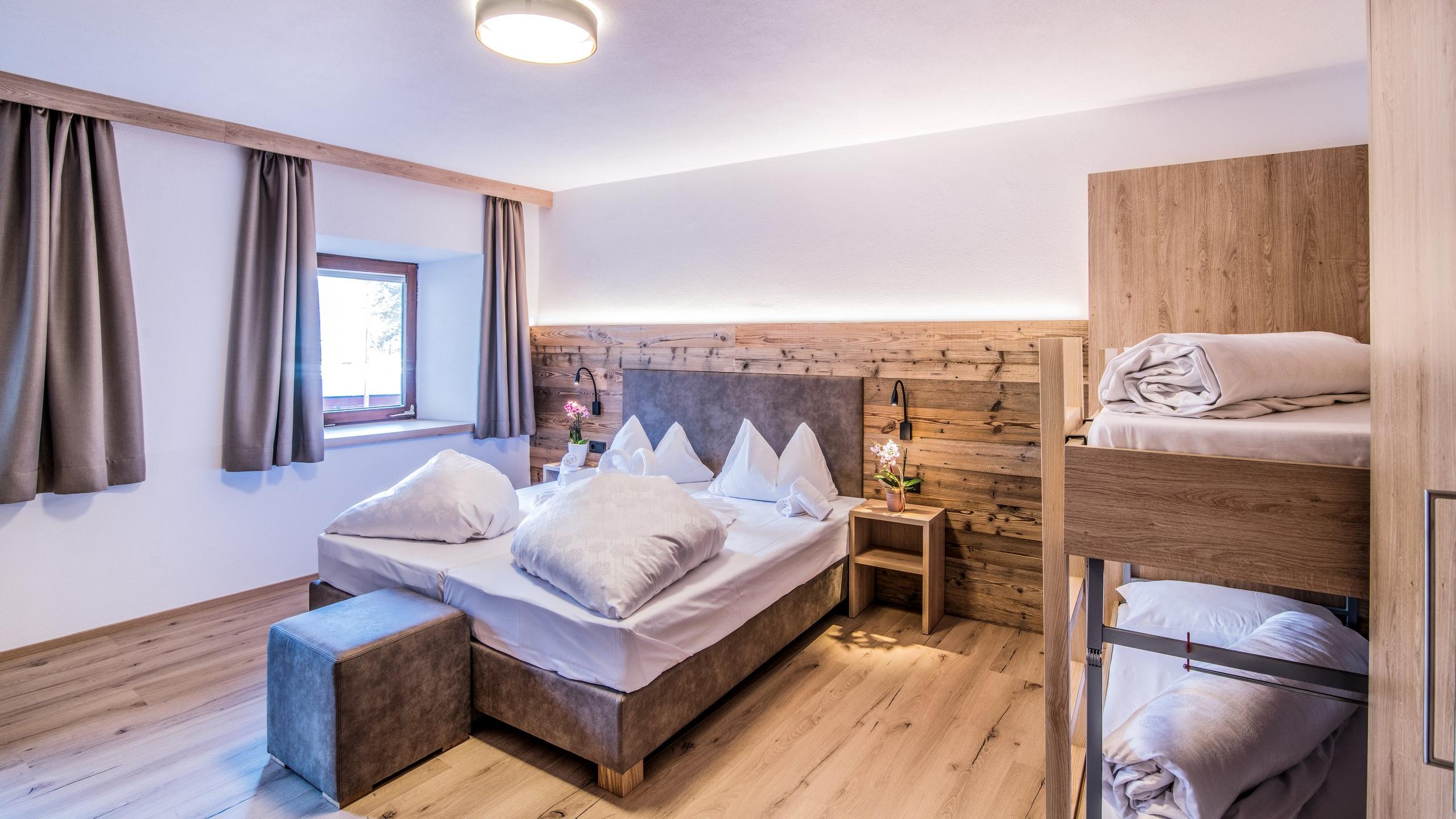 Camera da letto: letto matrimoniale, letto singolo, cassaforte, 2 armadi, 2 finestre, letto aggiuntivo e culla su richiesta